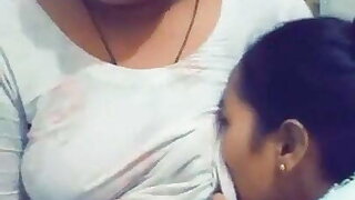 Indian lesbian daughter sucking mom's boobs